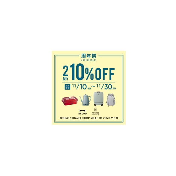 BRUNO/TRAVEL SHOP MILESTO帕尔科雅上野店迎来了周年。